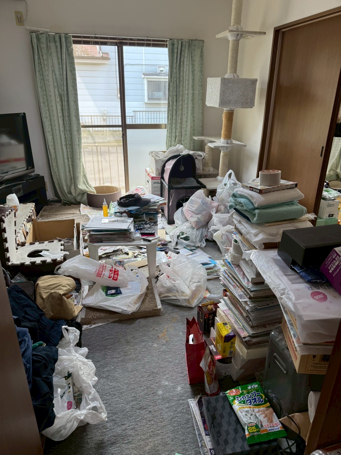 玄関 お手洗い 洗面所 お風呂 キッチン リビング 寝室 お部屋 対象物件は市営住宅ということもあり原状回復必須物件でした。 ご依頼者様からお部屋に残地物がたくさんと聞いておりました。 お写真の通り、各部屋にお荷物があふれておりました… 作業中にご依頼者様から… ”物が多いのにこ